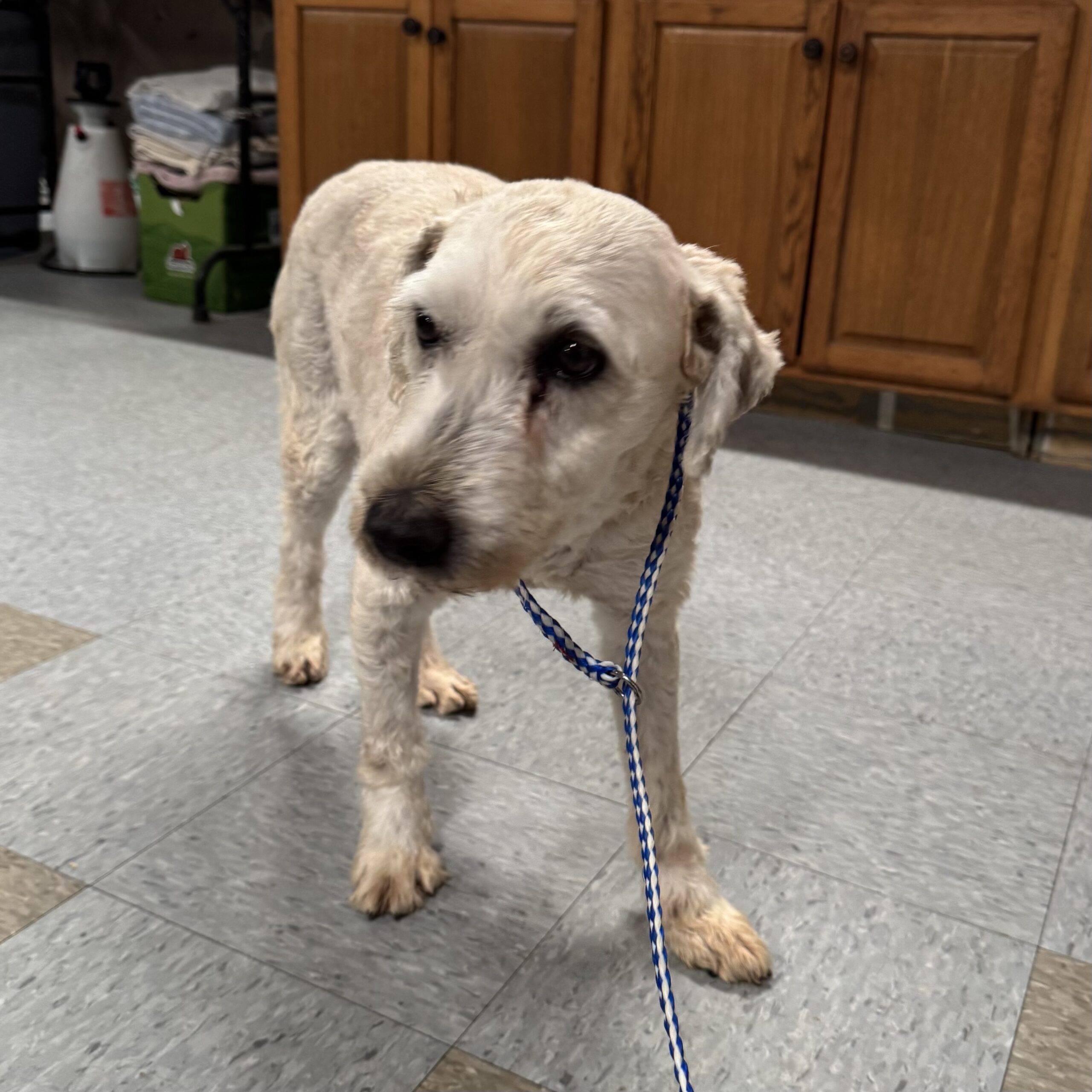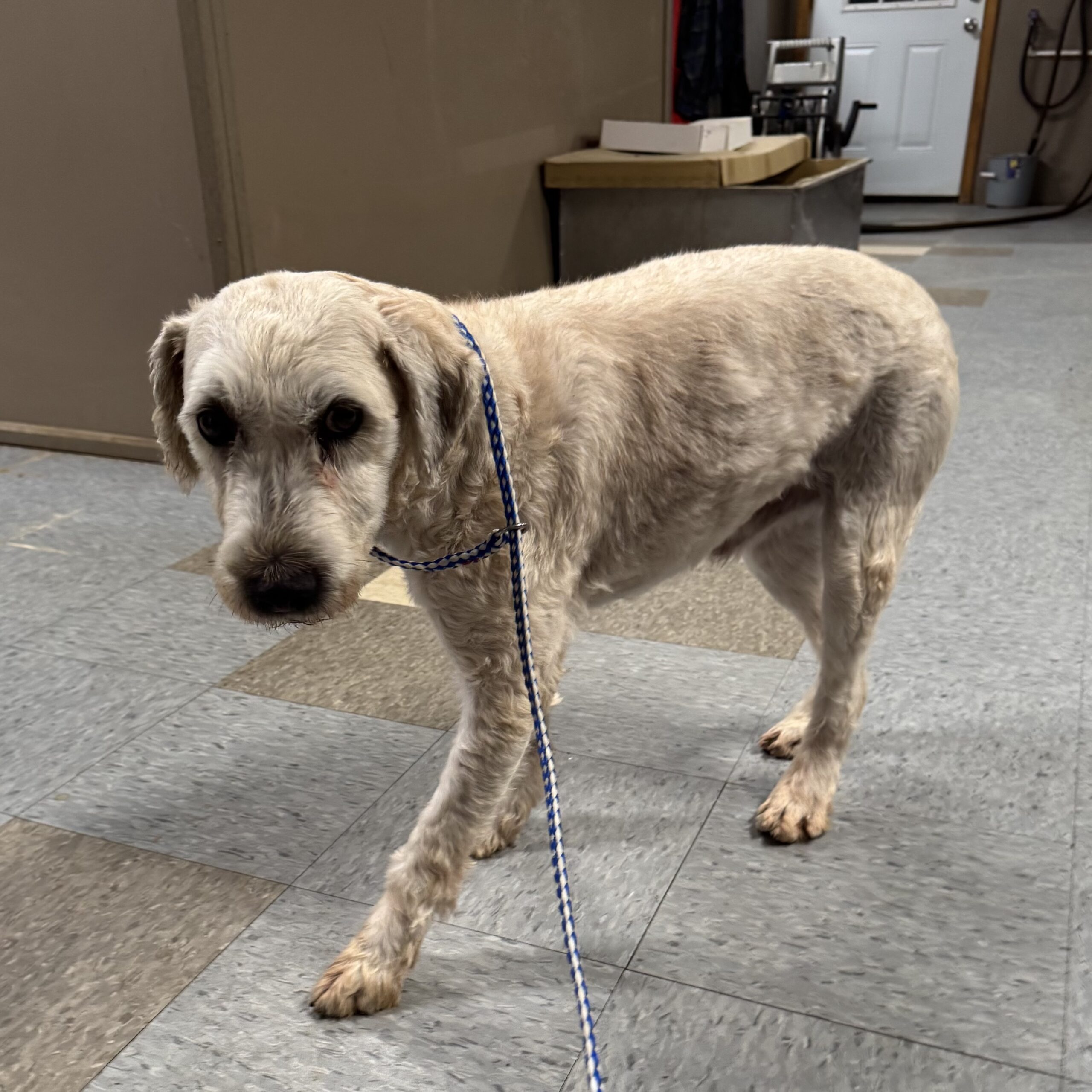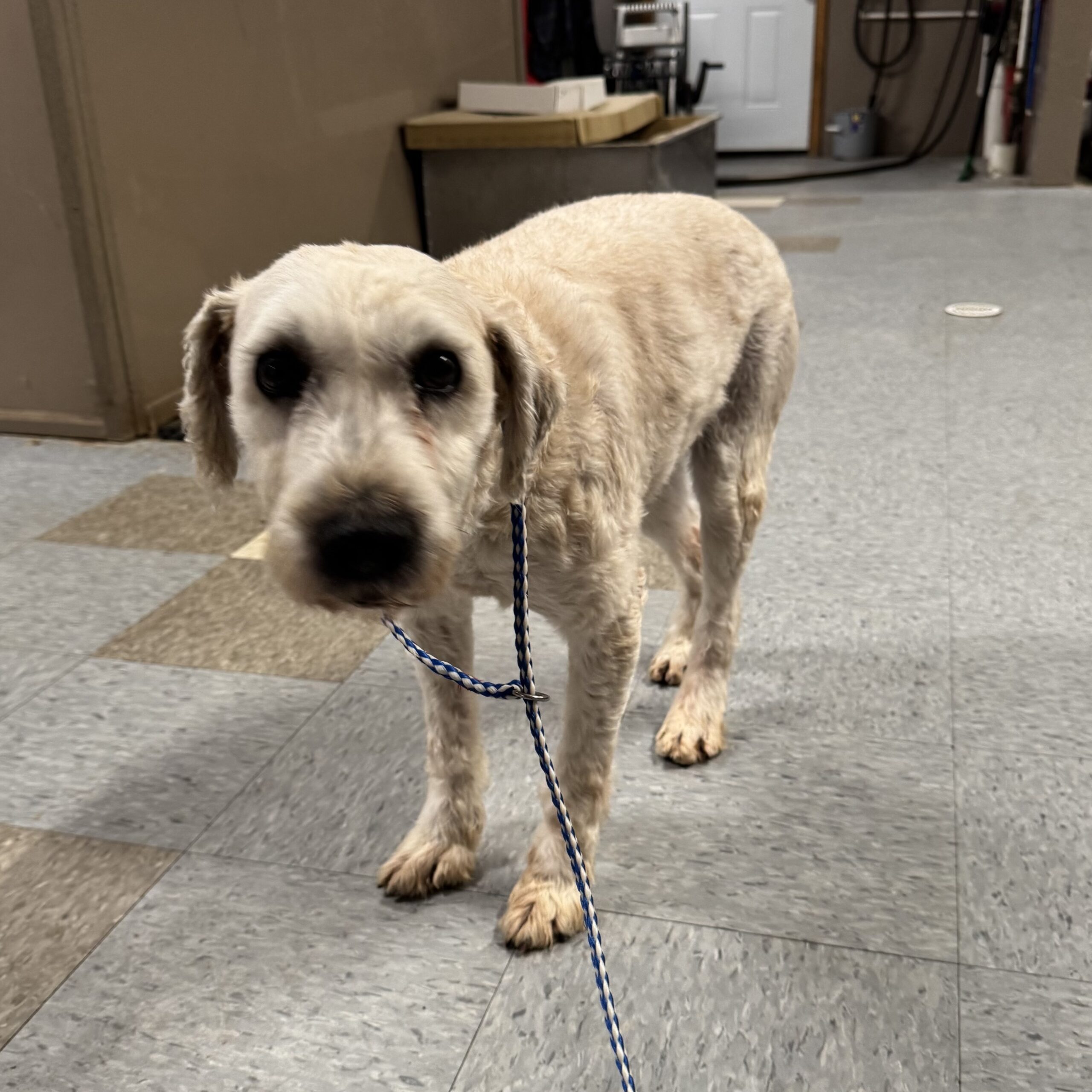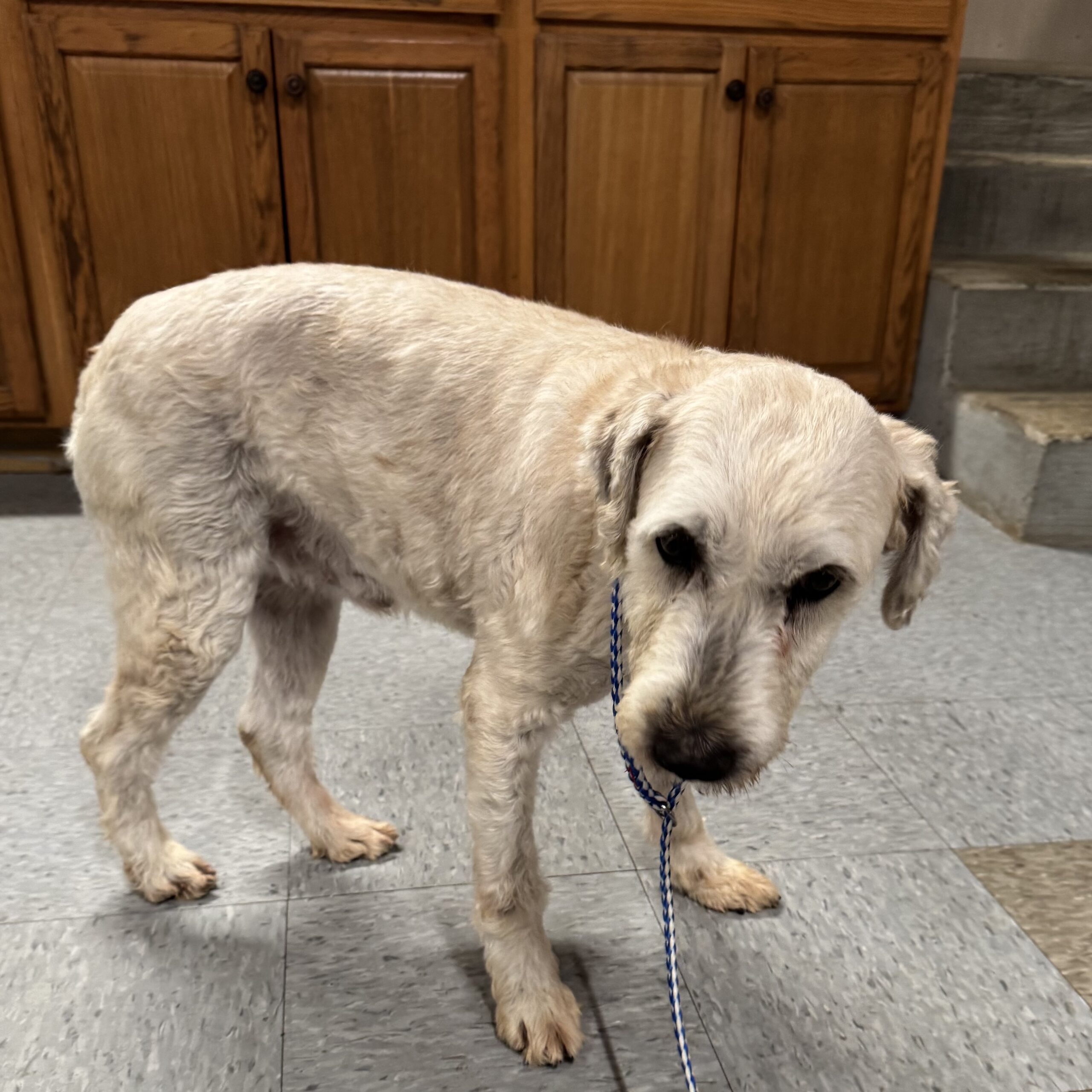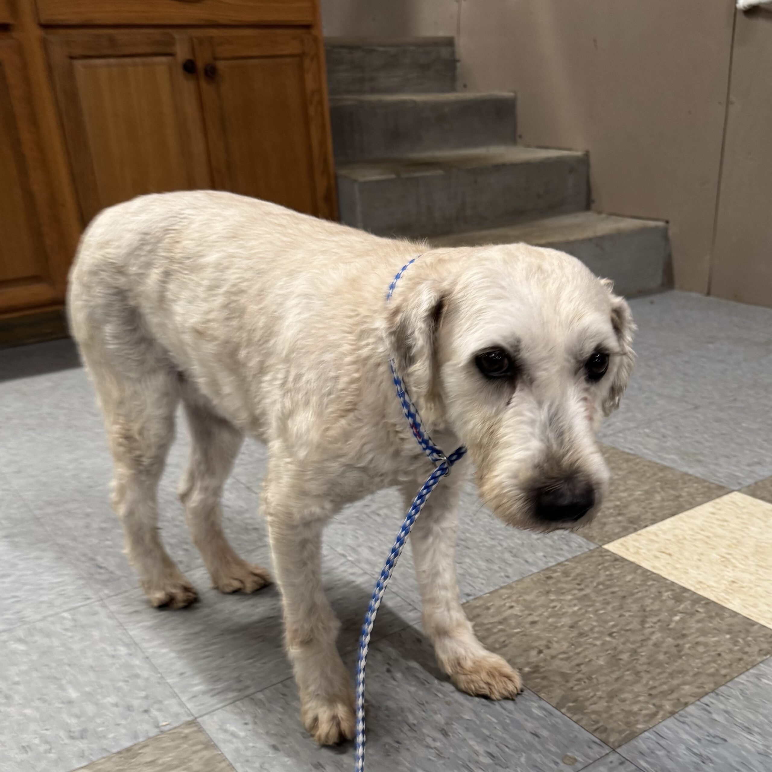 Coulson is a retired breeding dog and he is a Soft Coated Wheaten Terrier. As a breeding dog he was protective of his girls but his previous owner was able to work with him without issue, he is very cautious of strangers and it is going to take some time for him to trust you and warm up to a new family although he will with the right family. He has mellowed out a lot after being neutered and really just wants the couch potato life. Once you get to now him he can be a sweet little boy. It has taken some time but he is getting more used to pets and lovins. He seems to be more nervous with thunder now, we didn’t notice this before but the last couple of storms he has been apprehensive. He really does want to be a good boy and wants a family of his own. He has been neutered and a dental done, he is current on his shots and rabies and is on ProHeart. He is a non shedding dog and will require regular combing and grooming about every 8 weeks. He is good with other dogs as long as they are chill and not overly active. If you are interested in Coulson please fill out our adoption application.