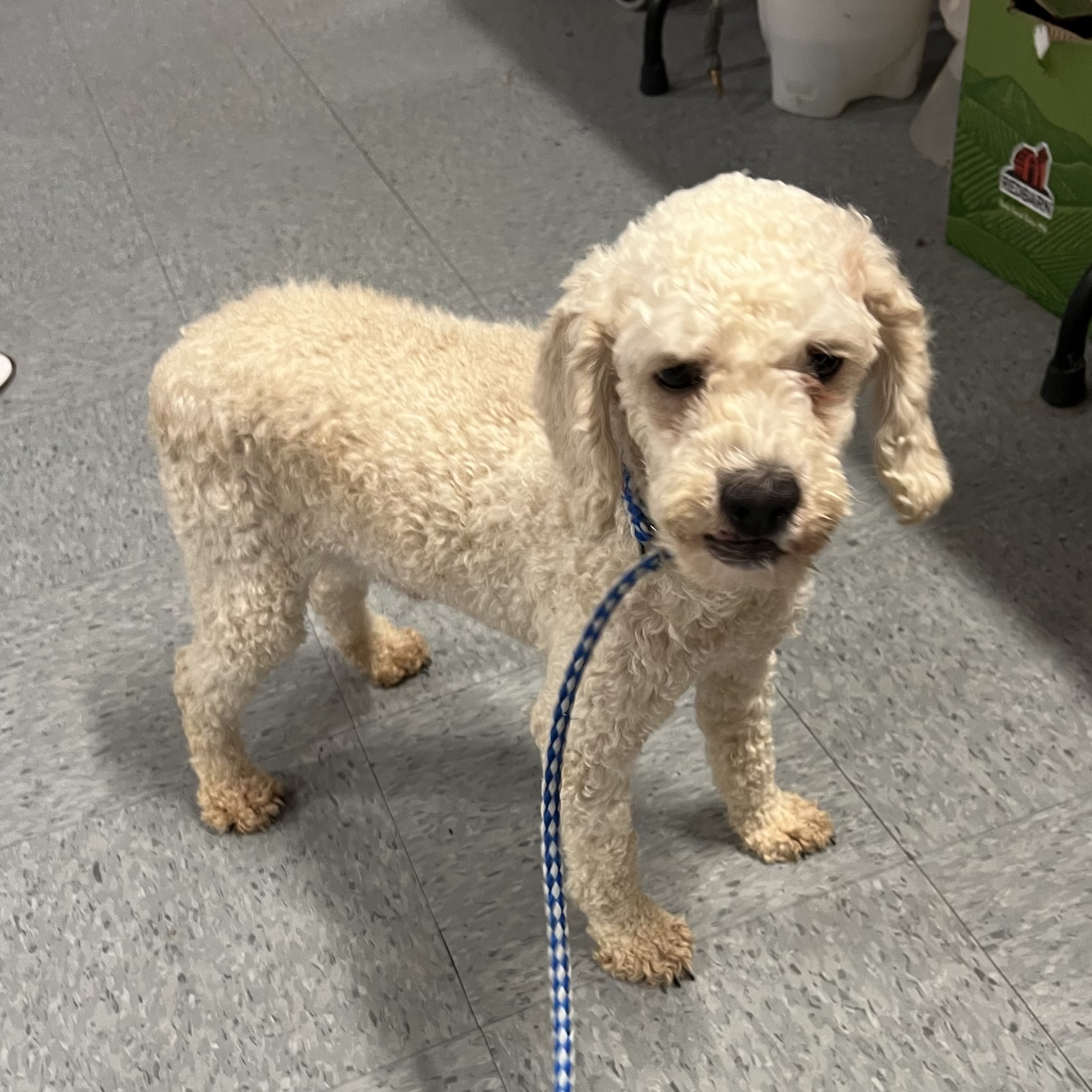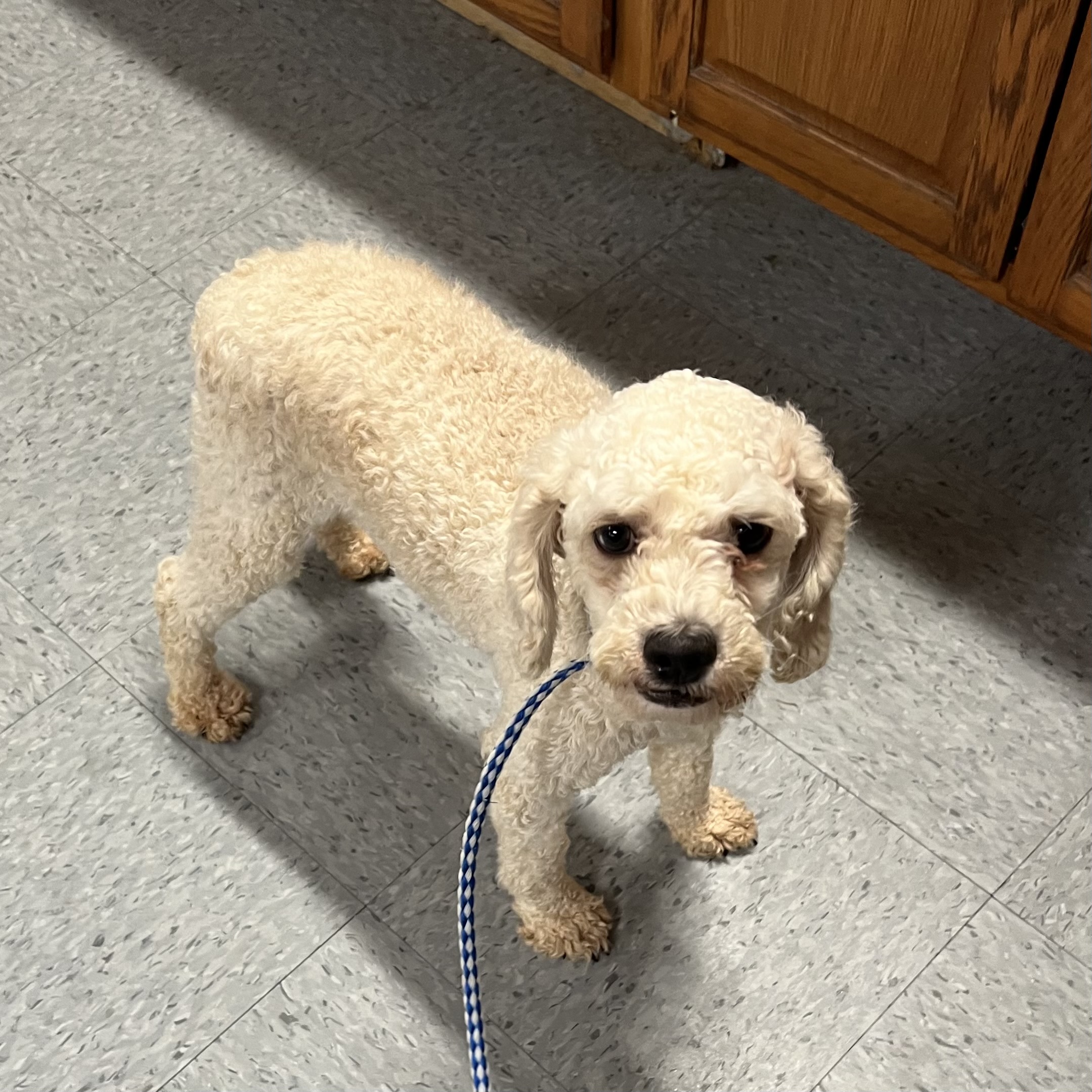 Nolan is a Cockapoo and comes to us as a puppy that did not sell at a Pet Store. He is a delightful little boy with such a positive outlook. He has an upbeat personality and will make a great addition to the right family. He is kind of silly in his own little way and has the cutest little wiggle butt when he gets excited. He has no health issues but he does have a mild underbite which gives him a pouty face. He is good with other dogs and is not an alpha dog. He has a curly coat like the Poodle but he could still shed just a little. He will need regular combings and trips to the groomers too. He has been neutered, microchipped and is on ProHeart. He has had a dental cleaning and is current on his shots and rabies. He is not house trained and will need all training. If you are interested in Nolan please fill out our adoption application.