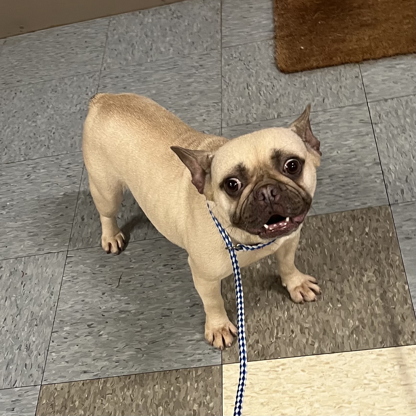 Sarai is a French Bulldog and is retired from breeding. You want to talk personality, she has it and more. As you can see from her pictures she is just one happy girl and full of life. Always wants to play and is just one of the goofiest little things. So happy to see us and always has a smile. She is good with other dogs and would probably enjoy the company of another canine like herself but she would also be fine to soak up all the lovin herself. She has no health issues but does have an underbite but then again she is a bulldog. She will shed and is not good if you have dog allergies. She has been spayed and had a dental done and is missing some of her teeth. She is microchipped, current on shots and rabies and is on ProHeart. She is not house trained and will need all training. If you are interested in Sarai please fill out our adoption application.
